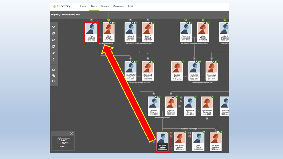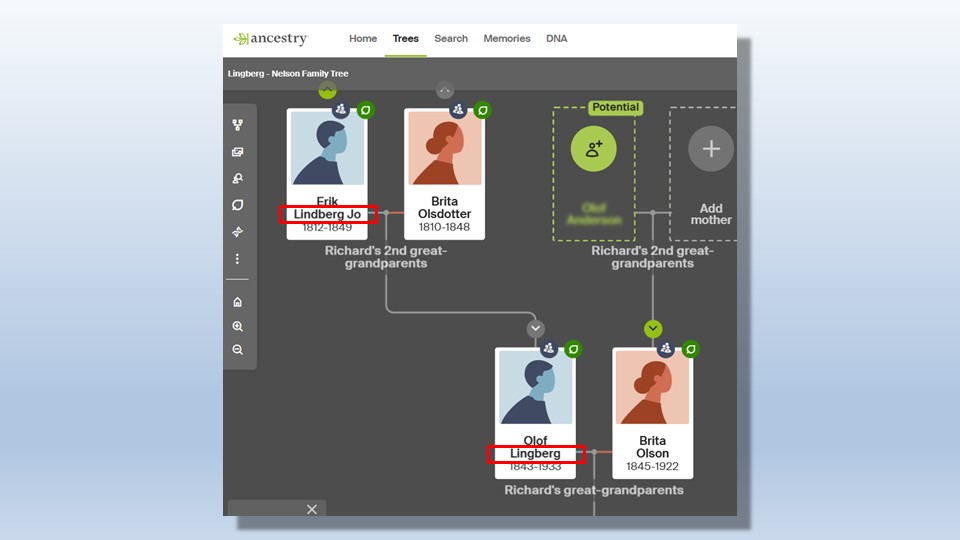 It seemed reasonable that the experts on genealogical algorithms at Ancestry.com would offer some insight into what I was seeking. There it was, my lineage…Olof & Brita…Walter and Florence…Richard and Corrine…and me. But who were Olof’s parents? Turns out their names were Erik and Brita “Lindberg-Jonnson”. That’s not “Lingberg”. Rather than insight I had simply uncovered another mystery to solve.