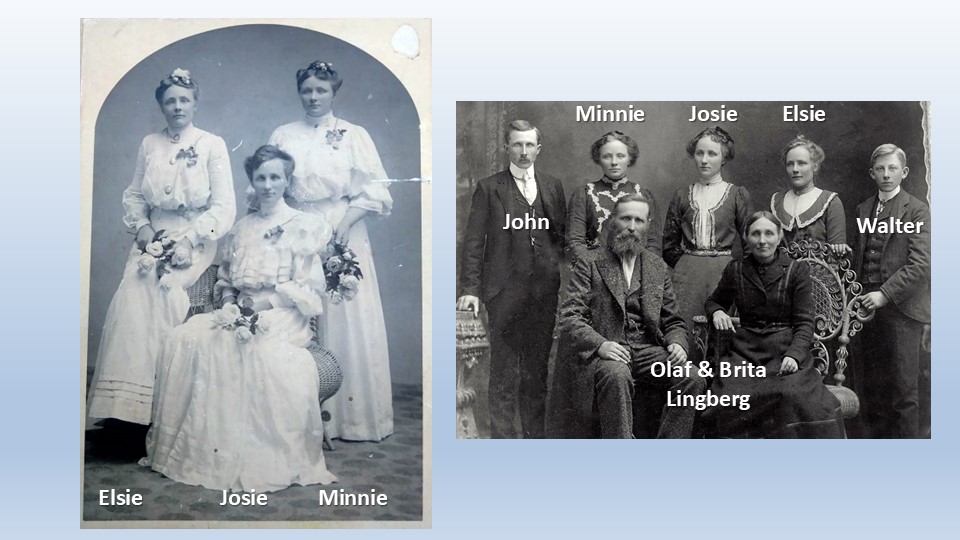 I found an old Olof and Brita Lingberg family photo taken in Clay County, South Dakota, U.S.A. My grandfather, Walter, is on the right side of the back row with his oldest sibling John and his three sisters, Minnie, Elise and Josie! Amazing, we’re related!