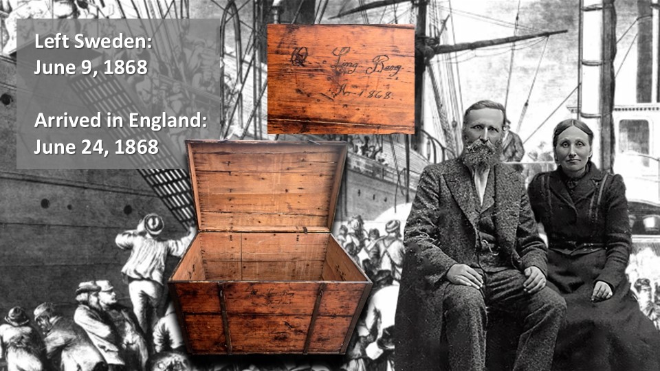 In 1869 Sweden adopted a law that required the registration of emigrants leaving Sweden and thereby creating of passenger lists of their departures. Having left a year earlier, in 1868, we’ve found little information about their exact course. However, we do know that a trans-Atlantic trip on one of the ships of the day would take between 16-24 days.