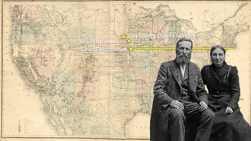 Olof and Brita most likely landed in the New York City area and would travel by rail across country. According to the “Swede Book” they would arrive in Council Bluffs, Iowa and then make their way to Sioux City, Iowa where they would live and work for the next two years.